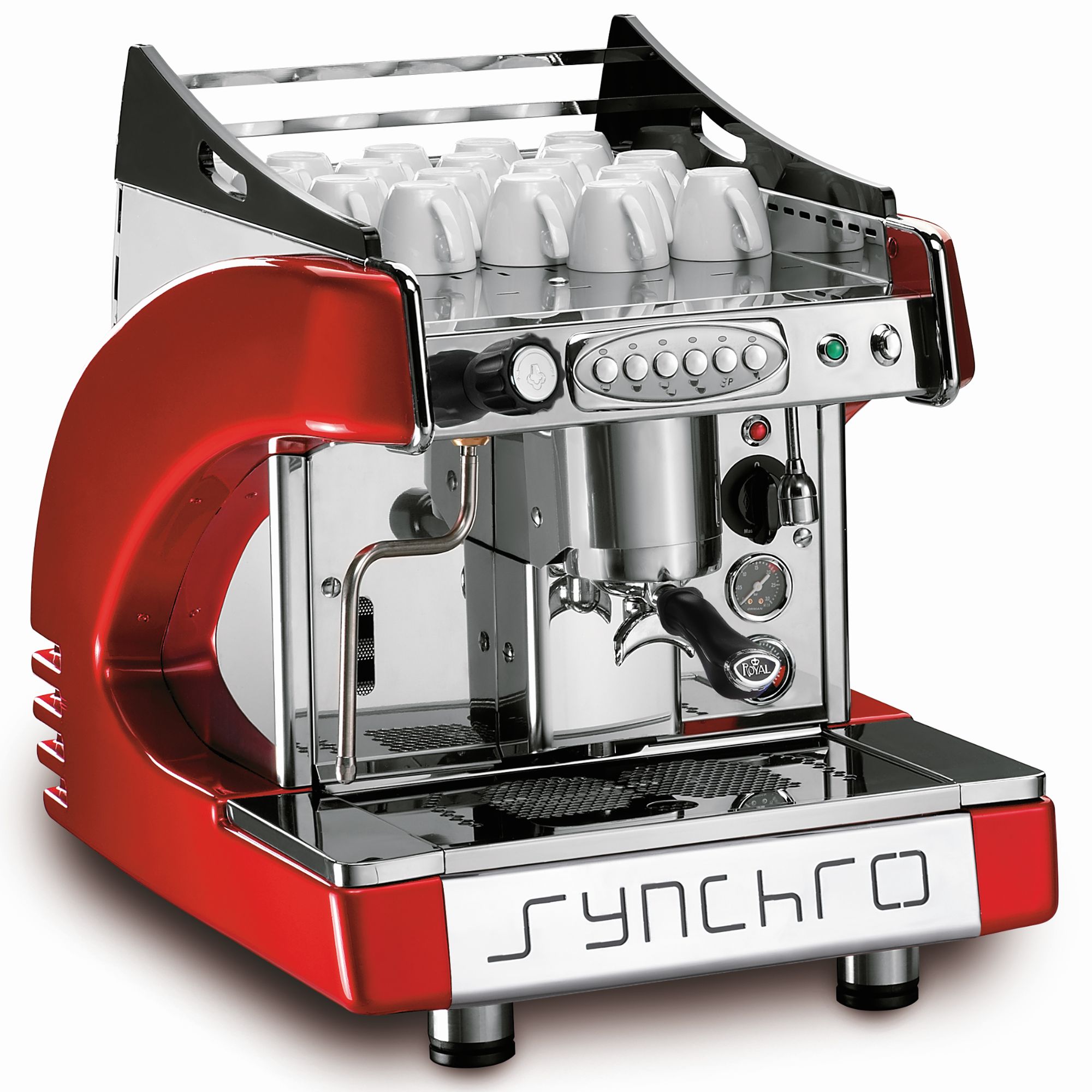 Modern bright red sporty design with the reminiscence of an Italian Ferrari 296 GTB; the Synchro boast the same high power towards the espresso making and milk steaming comparable to a 2 Group Cafe Coffee machine.