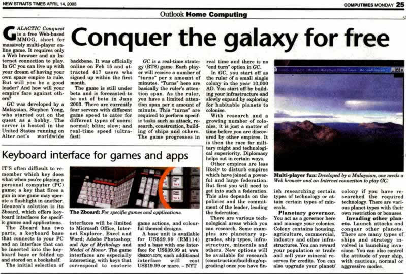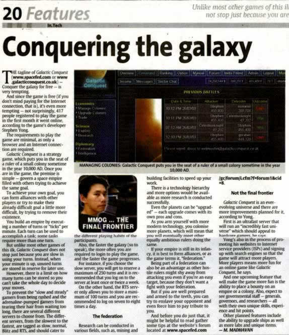 Stephen Yong`s Game featured in News Straits Time newspaper again, this time a tie in with Telekom Malaysia BlueHyppo Internet