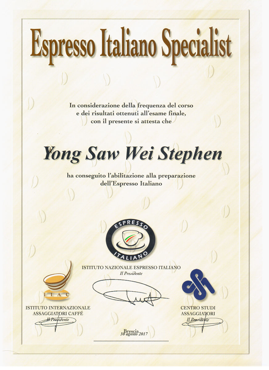 Stephen Yong (MBA Aus) the founder of Malaysia Barista is certified Coffee Specialist by IIAC & INEI (National Institute of Espresso in Italy) is the Senior Barista Trainer; and head of technical being Certified by City & Guild UK in Electrical+Electronic Engineering. Stephen is interviewed, featured or special guest invitation in many media including newspaper (NST, TheStar), radio (BFM, Hitz), magazine (HerWorld, TimeOut, Gempak, MajalahPC), online (100+ online-magazines & websites) & national TV (TV2, TV3, NTV7, Bernama).