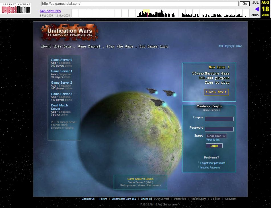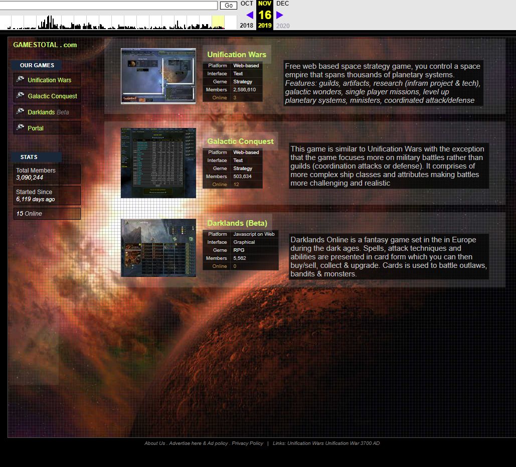 Unification Wars Game under Gamestotal with more than 2.5 million players