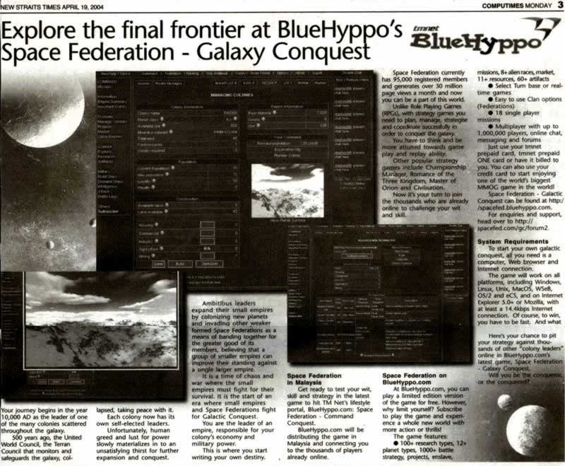 Stephen Yong`s Game featured in News Straits Time newspaper again, this time a tie in with Telekom Malaysia BlueHyppo Internet