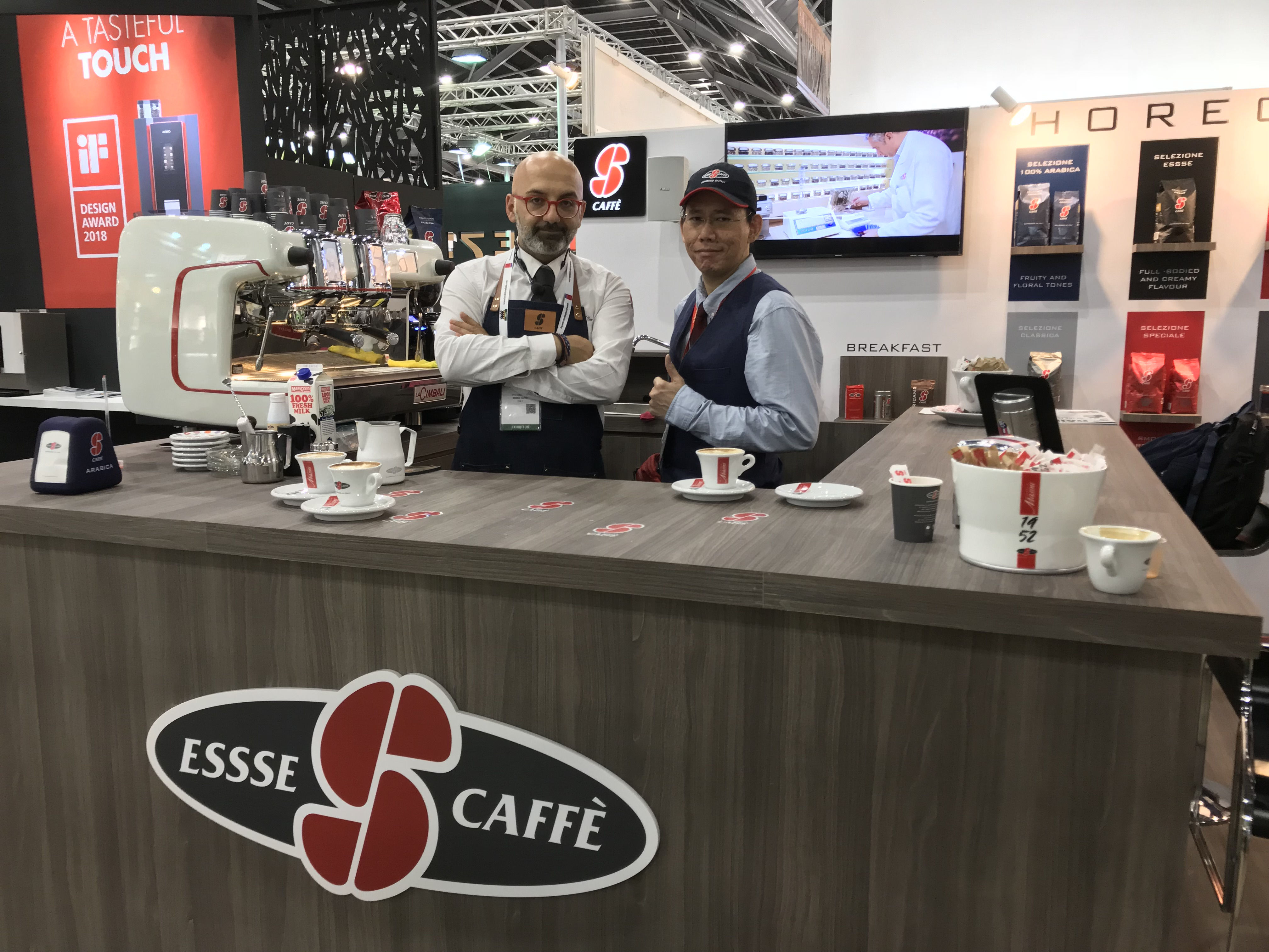 Stephen Yong making Coffee for a bunch of Italians in FHA 2018 in Singapore