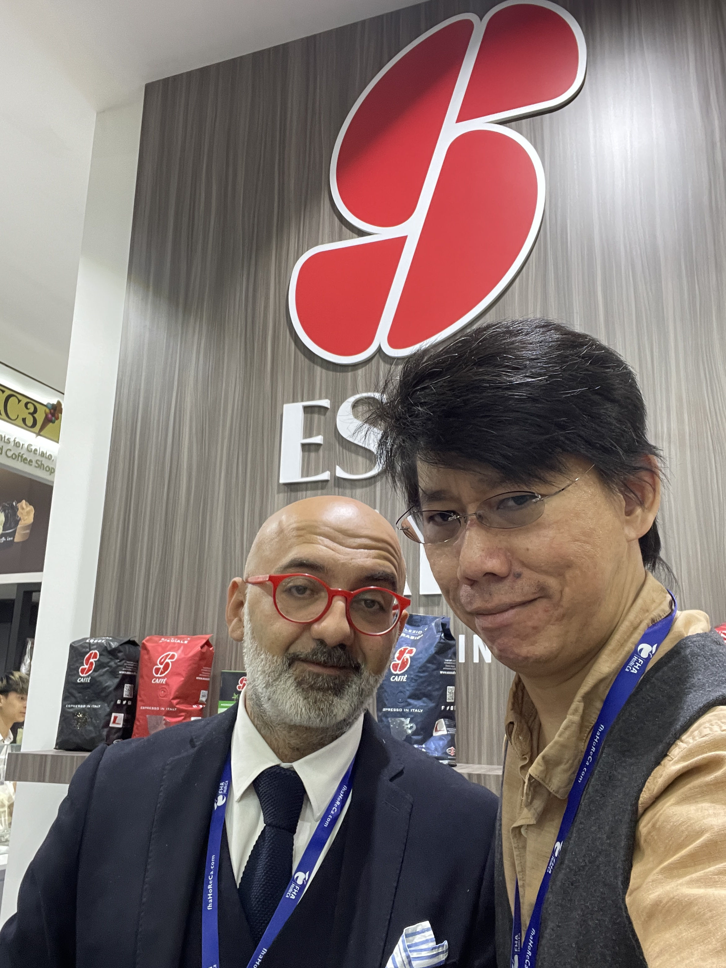 Stephen Yong making Coffee for a bunch of Italians in FHA 2022 in Singapore
